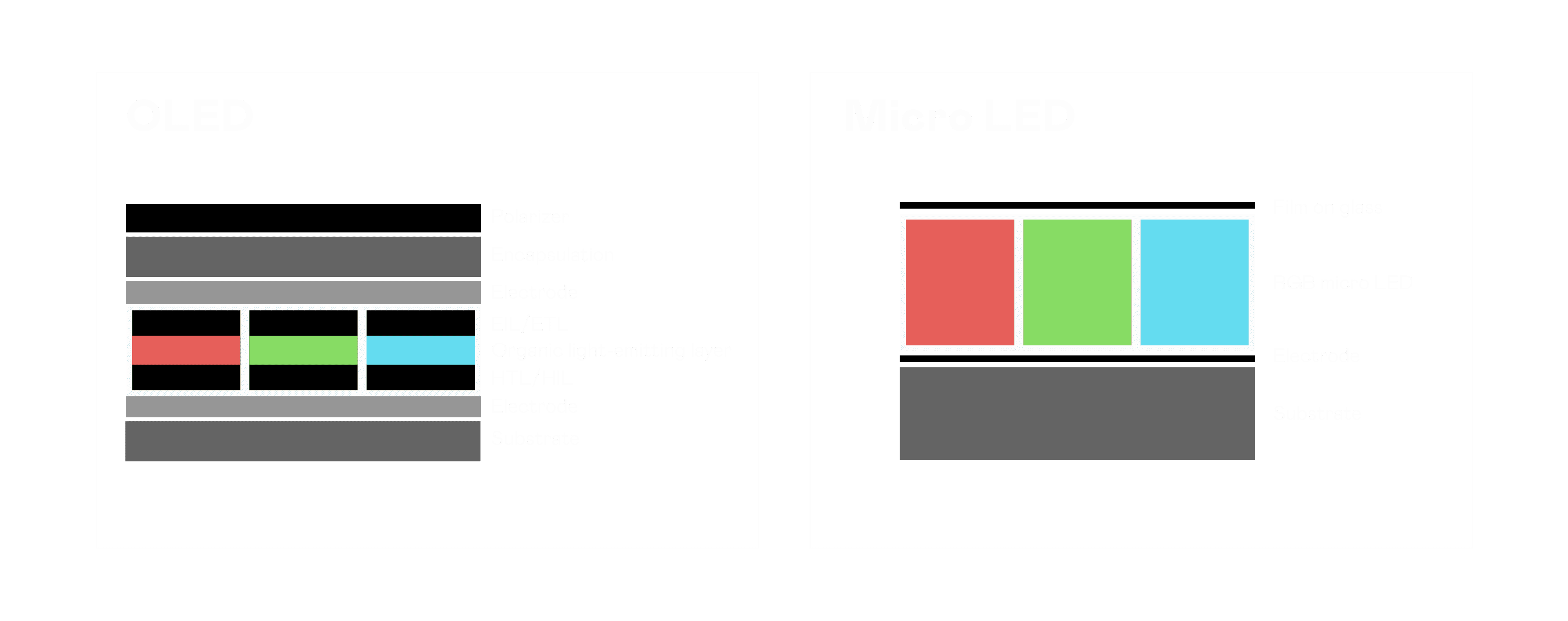 以 LED 做为显示画素,,,,可让 LED 的发光效率发挥到极致,,,从而让显示器具备优异的亮度表现,,,,不论是在户外或室内,,,,均具备出众的显示效果。。同时,,与使用有机材料的 OLED 相比,,,,LED 具备更稳定、、寿命更长的特性,,不仅不会有画面烙印问题,,,而且更不容易出现故障、、、坏点。。。